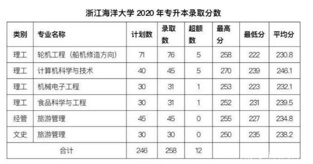 浙江海洋大學2020年專升本錄取分數線