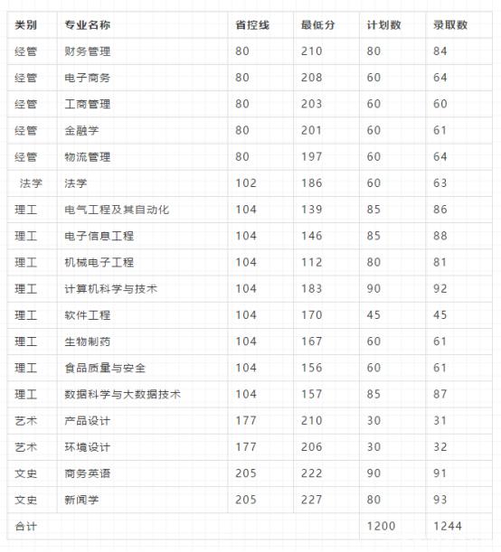 浙江工業大學之江學院2020年專升本錄取分數線