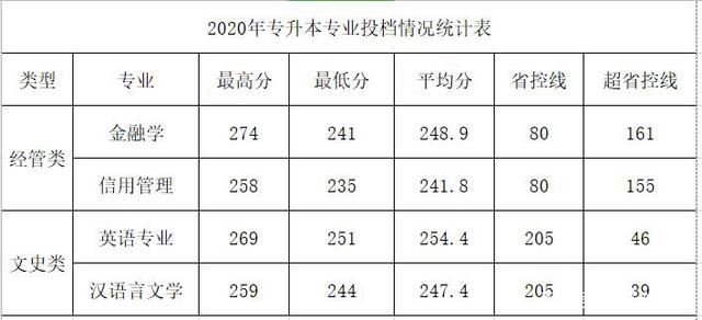 上海財經大學浙江學院2020年專升本錄取分數線