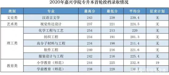 嘉興學院2020年專升本錄取分數線