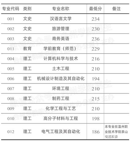 溫州大學2020年專升本錄取分數線