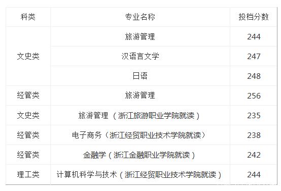 浙江樹人學院2020年專升本錄取分數線