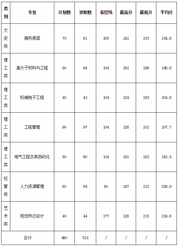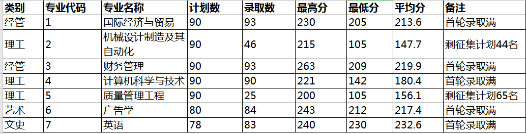 浙江理工大學科技與藝術學院2020年專升本錄取分數線