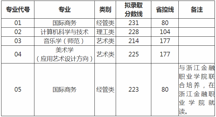 浙江音樂學院2020年專升本錄取分數線