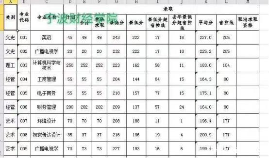 寧波財經學院2020年專升本錄取分數線