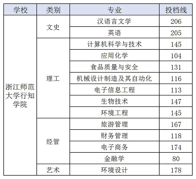 浙江師范大學行知學院2020年專升本錄取分數線