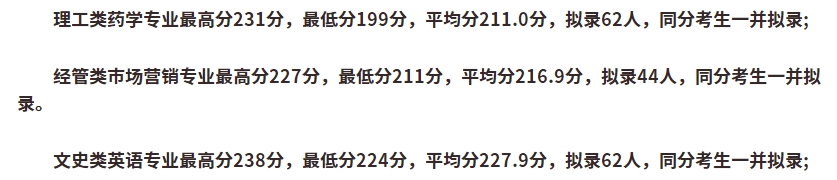 浙江中醫藥大學2020年專升本錄取分數線