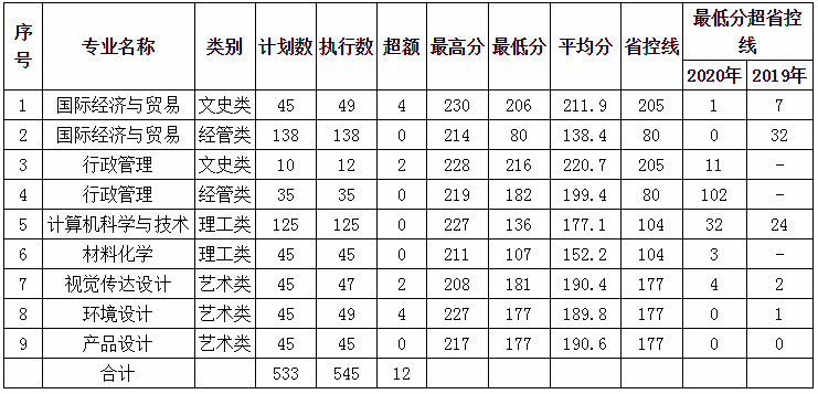 浙江廣廈建設職業技術學院2020年專升本錄取分數線