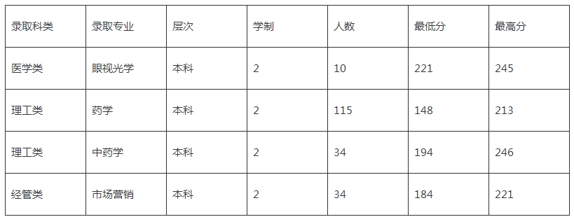 溫州醫科大學仁濟學院2020年專升本錄取分數線