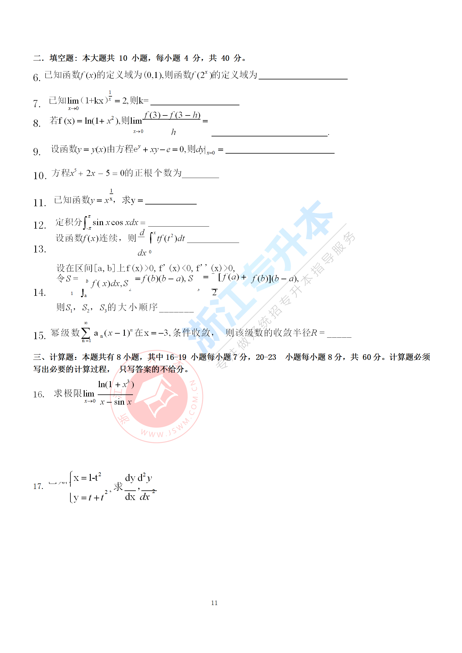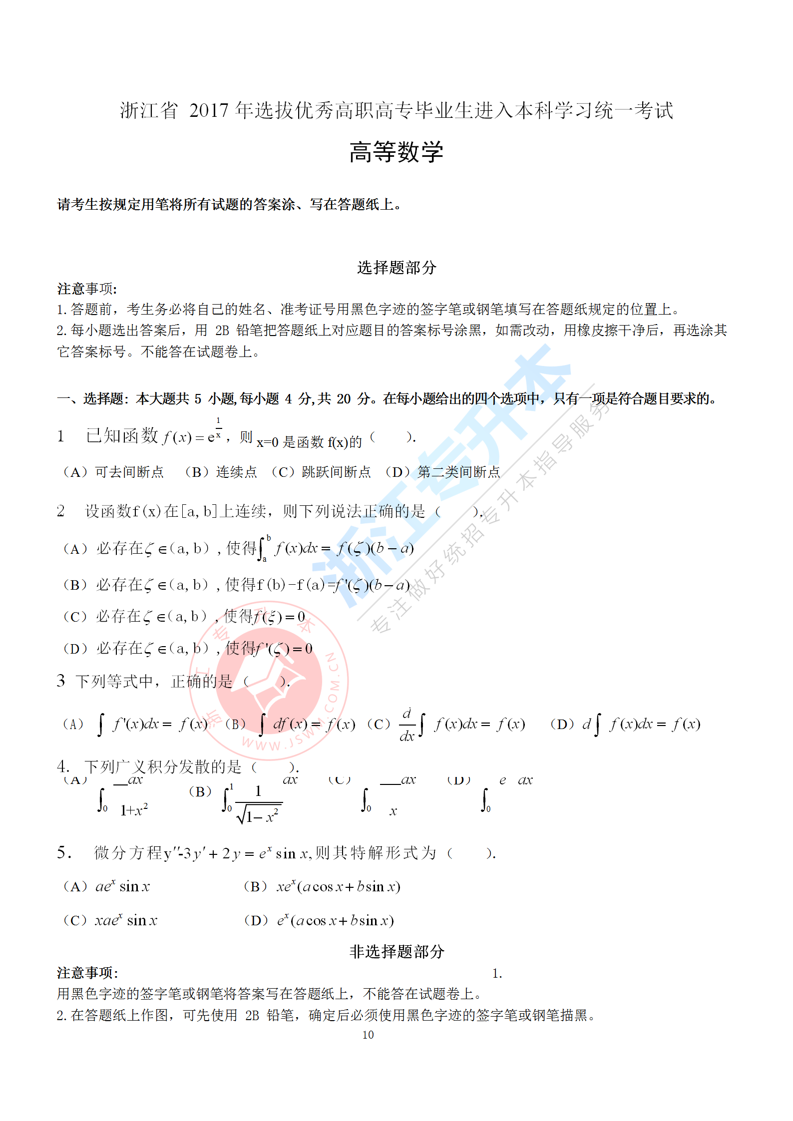 浙江專升本 >統招專升本 > 專升本試題題庫 > 歷年真題 > 2017年浙江專升本《高等數學》真題卷
