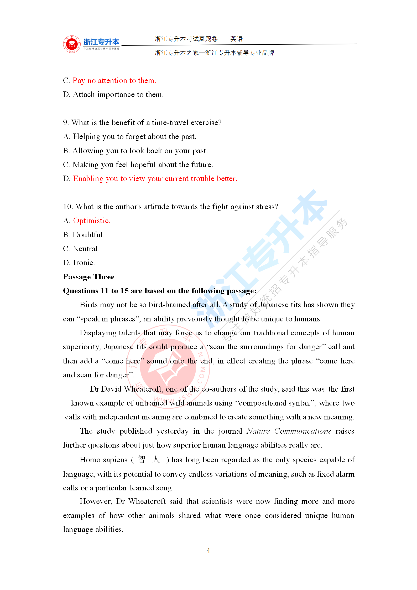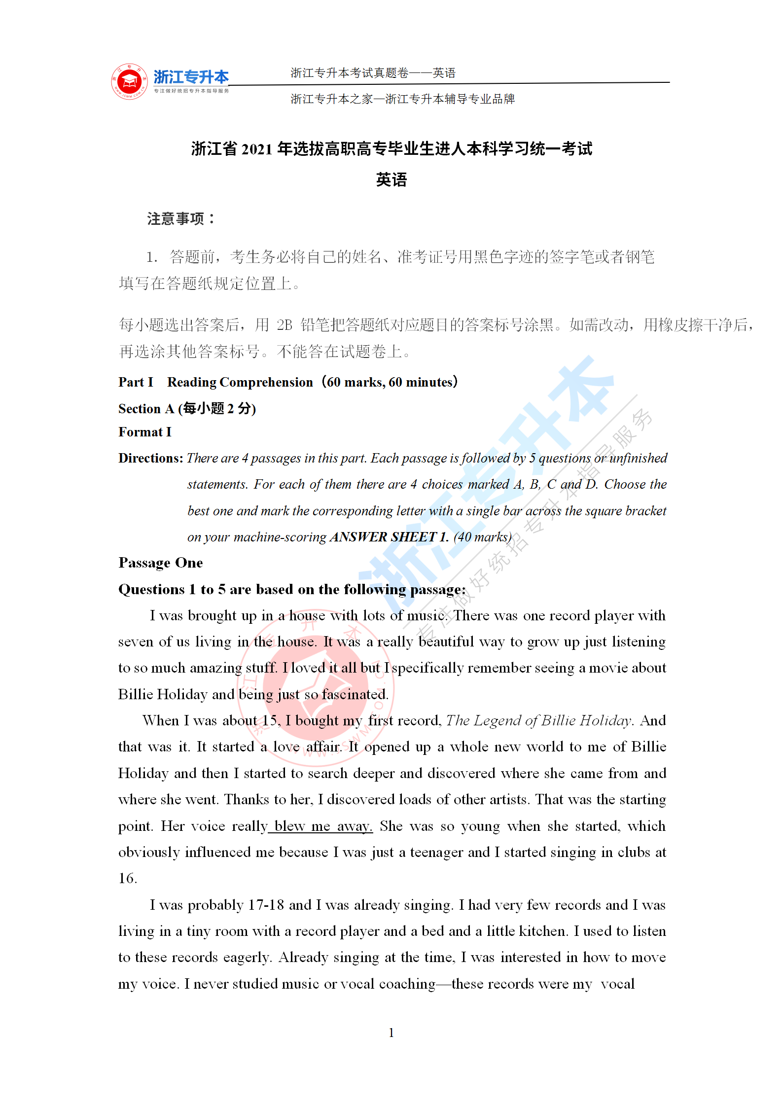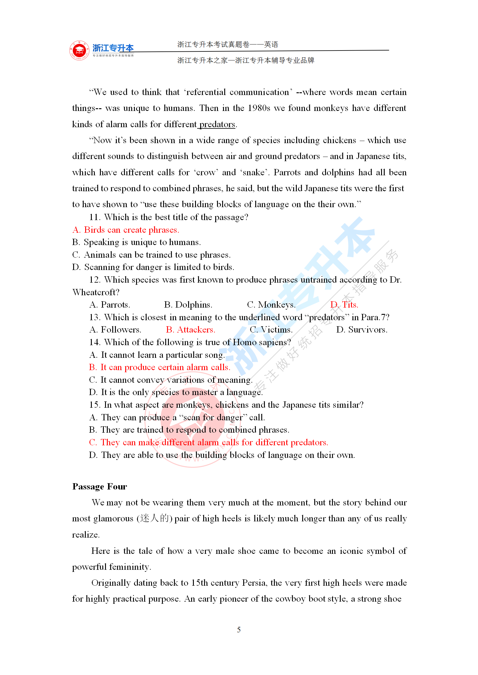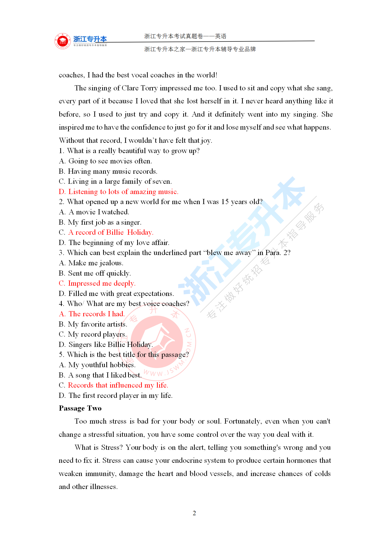 2021年浙江專升本《英語》答案
