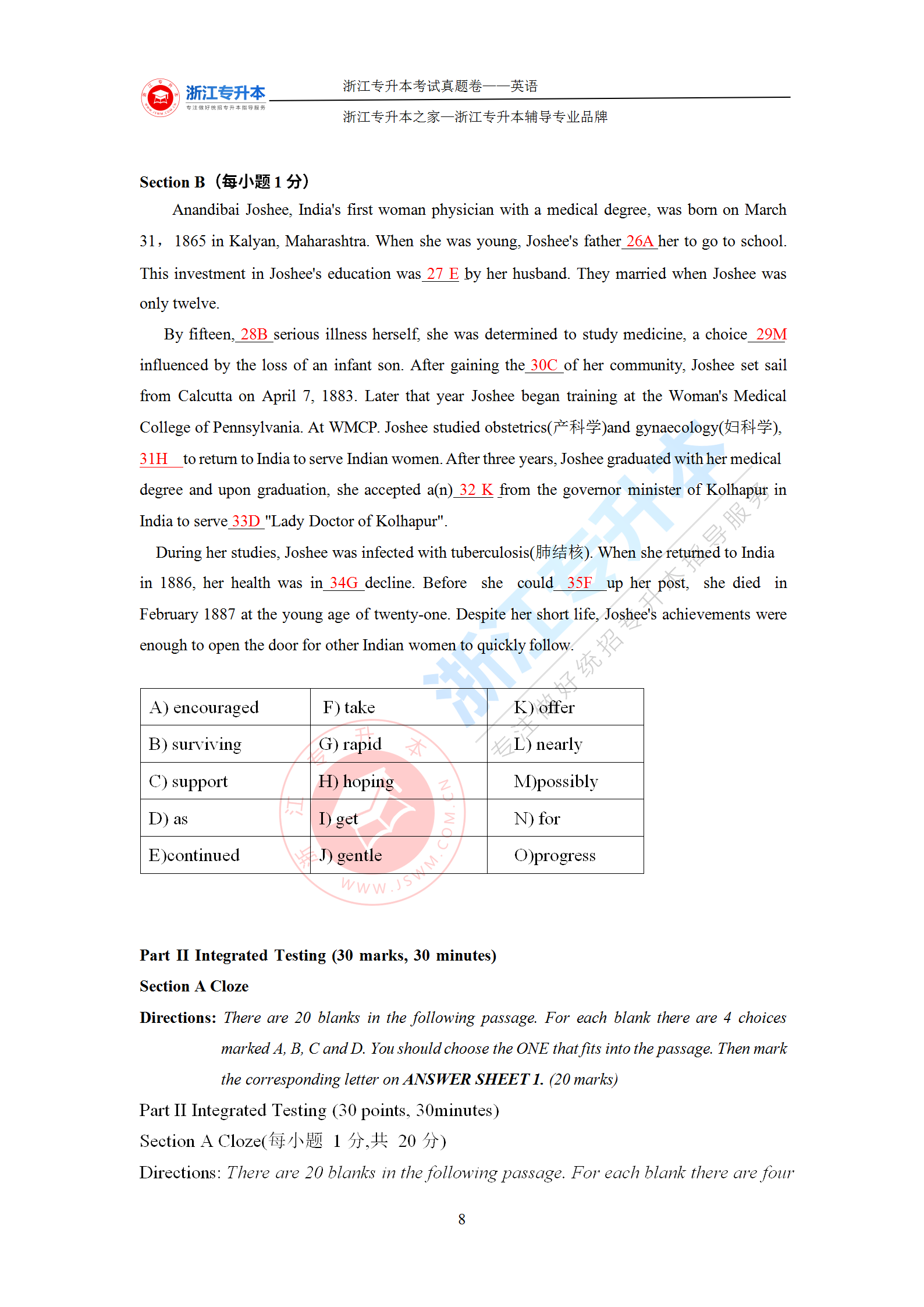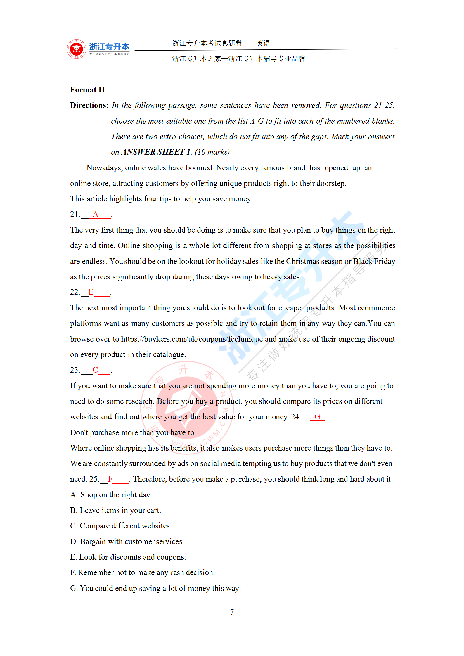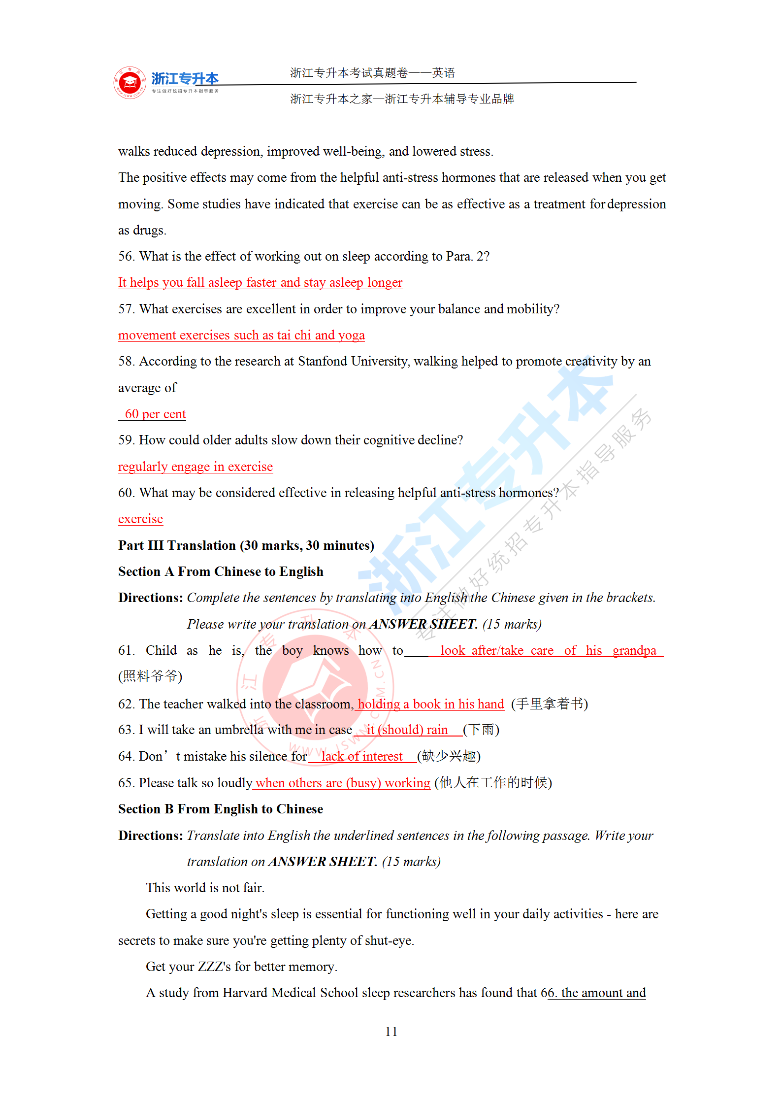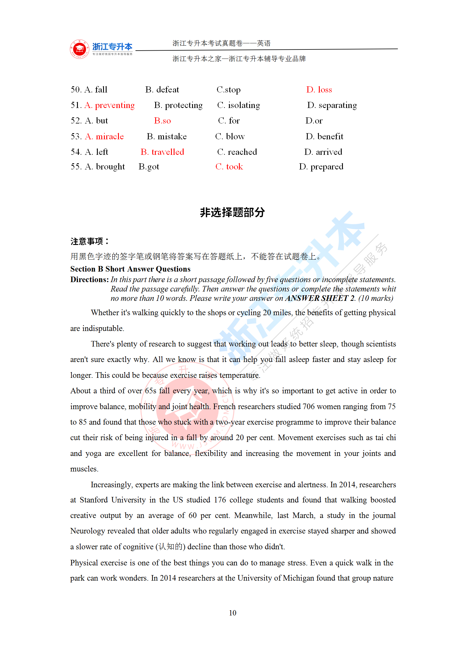 浙江專升本 >統招專升本 > 專升本試題題庫 > 真題答案 > 2021年浙江專升本《英語》答案