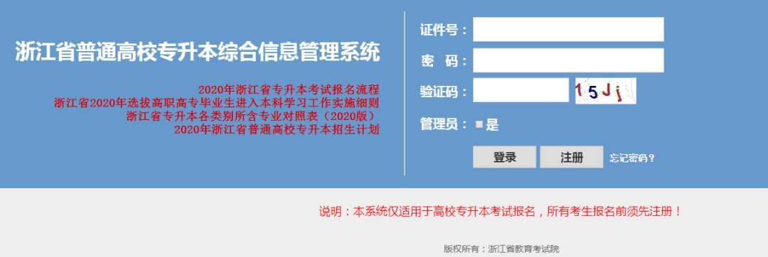 1、考生登錄浙江專升本報名系統(tǒng),用本人身份證注冊賬號!