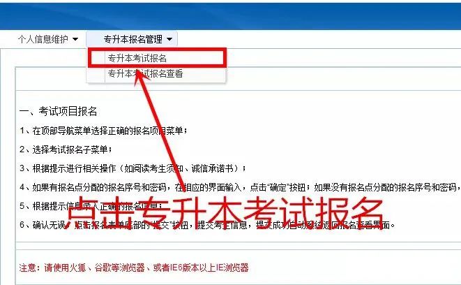2、進(jìn)入專升本報名管理,進(jìn)行報名!