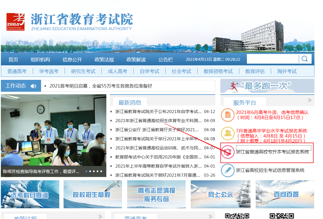 三、考生打開浙江招生考試,進入本次專升本服務系統。