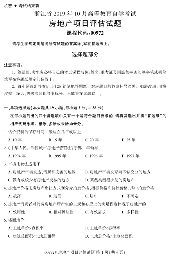 對于報考浙江專升本的考生來說,想要做好復習備考工作,除了熟記教材中的知識點以外,適當?shù)恼骖}訓練也是十分必要的。今天小編要和考生們分享的是2019年10月份浙江自考00972房地產(chǎn)項目評估試題。