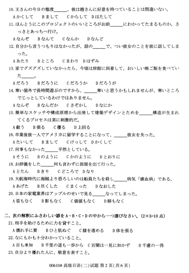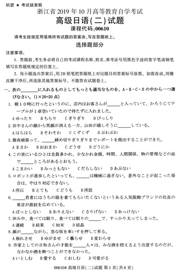對于考生們來說,現階段就開始進行浙江自考的復習備考的話,考生們能夠留給自己復習備考的空間越大。同時,考生們可以通過真題的訓練來檢驗自己的學習成果。為了幫助考生們復習備考,浙江專升本整理了2019年10月浙江自考00610高級日語(二)試題。