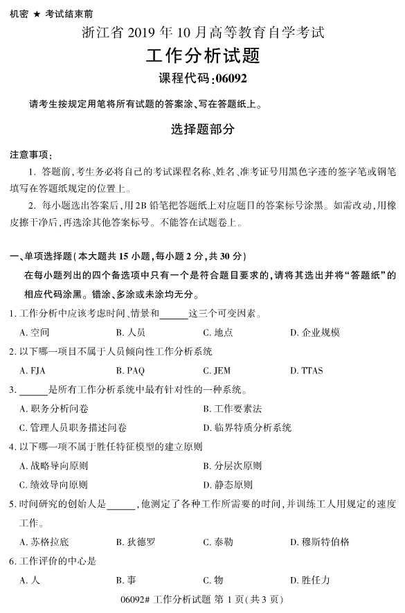 對于考生們來說,現(xiàn)階段就開始進行浙江自考的復(fù)習(xí)備考的話,考生們能夠留給自己復(fù)習(xí)備考的空間越大。同時,考生們可以通過真題的訓(xùn)練來檢驗自己的學(xué)習(xí)成果。為了幫助考生們復(fù)習(xí)備考,浙江專升本整理了2019年10月浙江自考06092工作分析試題。