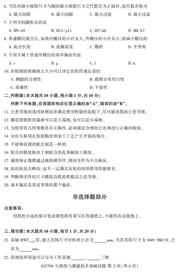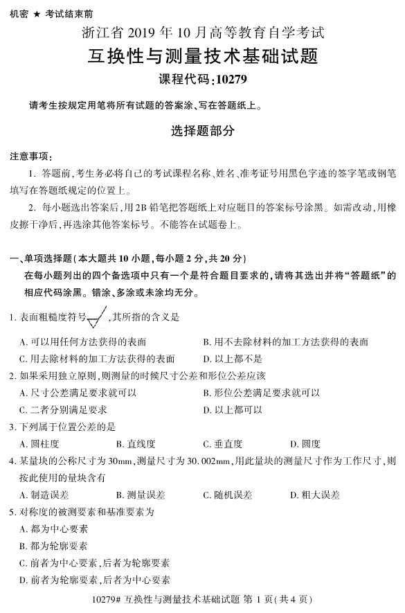 【導讀】對于考生們來說,想要盡早拿到浙江自考本科畢業證書,復習備考工作當然是越早開始越好,當然在備考過程中必要的真題訓練可以幫助考生們更好的掌握考試的重點。所以,浙江專升本為各位考生們整理了2019年10月浙江自考10279互換性與測量技術基礎試題。