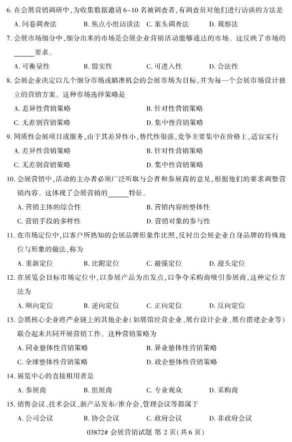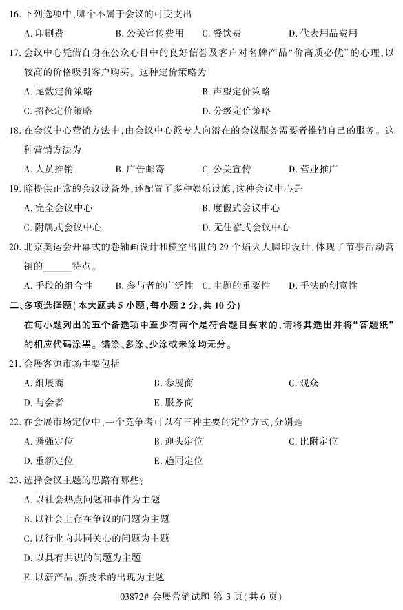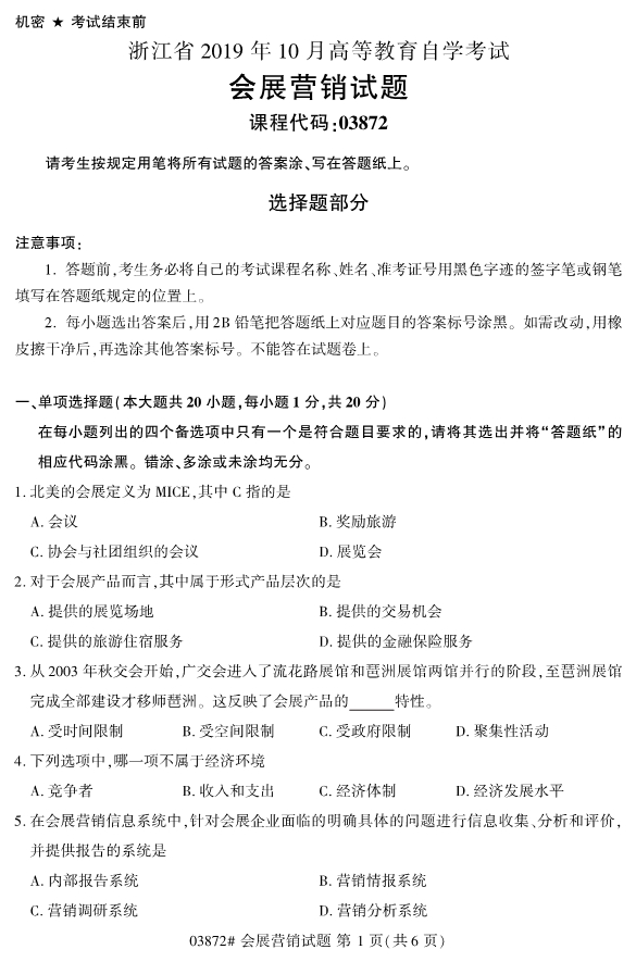 2019年就將接近尾聲了,2020年4月份的浙江成人自考即將來臨。而考生們真正可以用來復(fù)習備考的時間其實很有限,在這個過程中考生們要把握真題,抓住考試復(fù)習備考的重點。所以今天小編為各位考生們帶來了2019年10月浙江自考03872會展營銷試題。