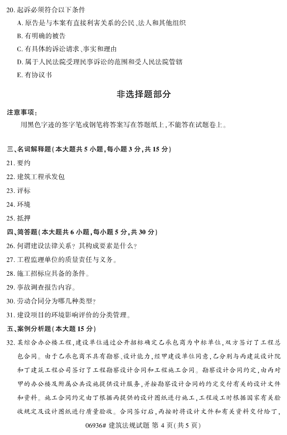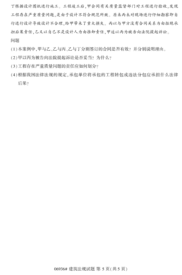 對于想要報考2020年4月份浙江自考專升本考試的考生們來說,現階段最重要的是就是確定自考報考的專業,然后開始進行針對性的復習備考工作。對于有些考生們反映找不到考試的重點,小編建議考生們可以進行一些真題 的訓練來了解考試內容。下面小編為考生們帶來2019年10月浙江自考06936建筑法規試題。