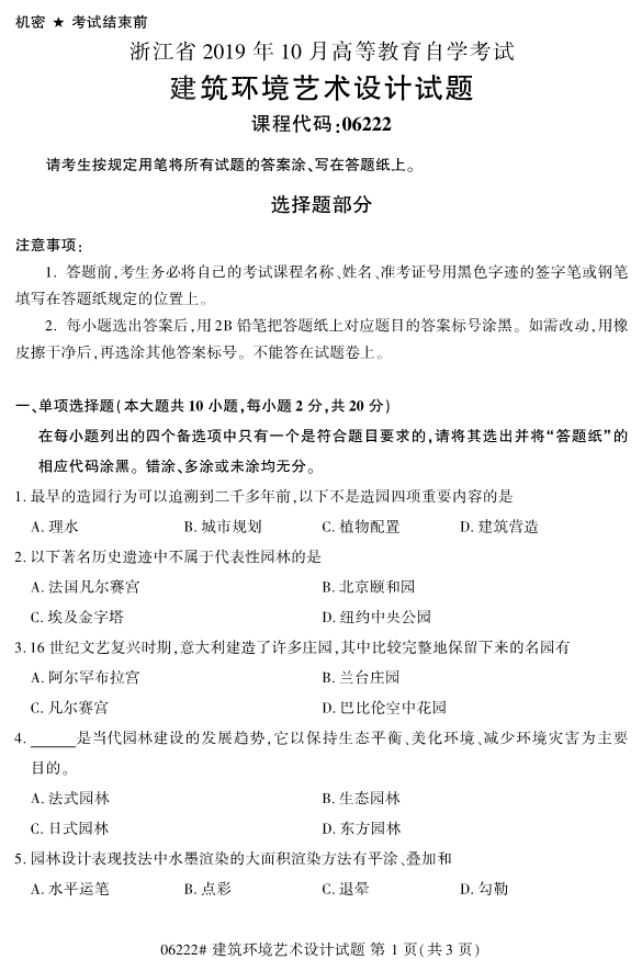 浙江自考專(zhuān)升本考試的考生們來(lái)說(shuō),真正可以用來(lái)復(fù)習(xí)備考的時(shí)間其實(shí)沒(méi)有很多了,所以現(xiàn)階段考生們就要確定好報(bào)考的專(zhuān)業(yè),開(kāi)始復(fù)習(xí)備考工作了,為了幫助考生們復(fù)習(xí)備考,小編整理了2019年10月浙江自考06222建筑環(huán)境藝術(shù)設(shè)計(jì)試題。