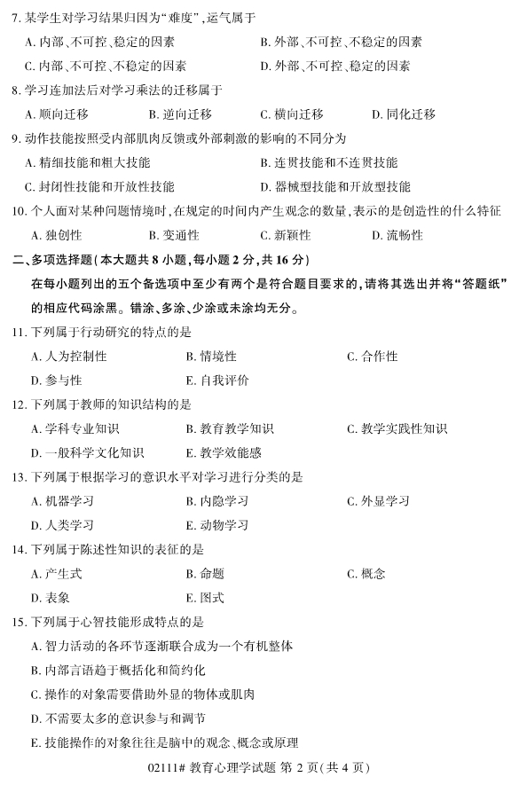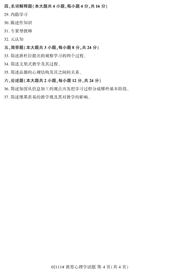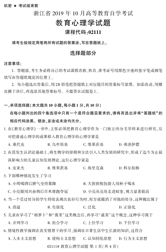 【結尾】以上就是關于2019年10月浙江自考02111教育心理學試題的全部內容,考生如果想獲得更多關于浙江專升本相關資訊,如浙江專升本政策公告、統招專升本、成考專升本、自考專升本、網教專升本、專升本常見問題等相關信息,敬請關注我們浙江專升本網(http://m.205760.com/)。