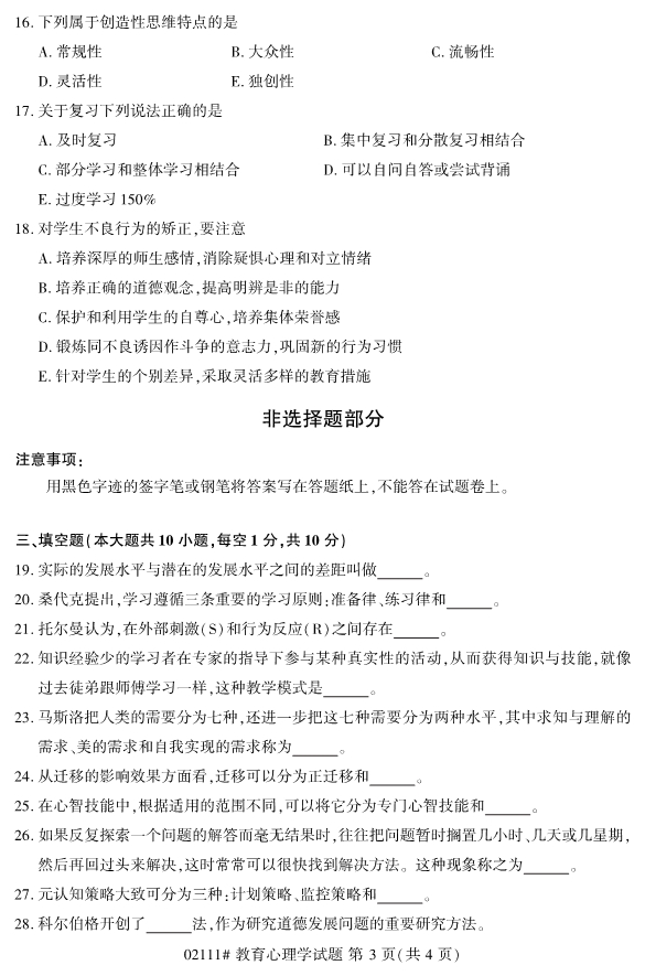 在復習備考2020年4月的浙江自考專升本考試過程中,考生們不僅需要對于教材中的內容熟記于心,還要找些必要的真題進行訓練,這樣才能為復習備考做好準備。為了幫助考生們備考,小編整理了2019年10月浙江自考02111教育心理學試題。