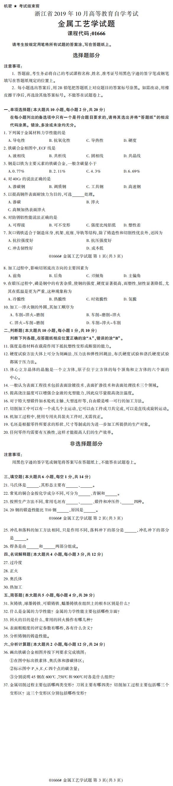【結(jié)尾】以上就是關(guān)于2019年10月浙江自考01666金屬工藝學(xué)試題的全部內(nèi)容,考生如果想獲得更多關(guān)于浙江專升本相關(guān)資訊,如浙江專升本政策公告、統(tǒng)招專升本、成考專升本、自考專升本、網(wǎng)教專升本、專升本常見問題等相關(guān)信息,敬請(qǐng)關(guān)注我們浙江專升本網(wǎng)(http://m.205760.com/)。
