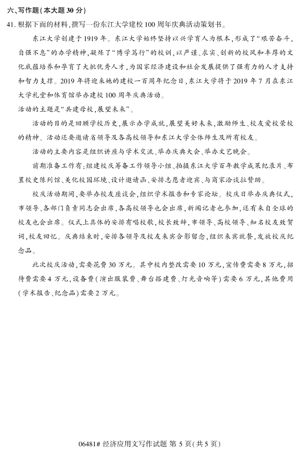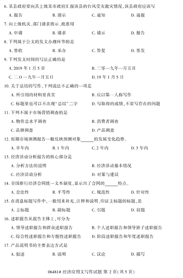 【結(jié)尾】以上就是關(guān)于2019年10月浙江自考06481經(jīng)濟(jì)應(yīng)用文寫(xiě)作試題的全部?jī)?nèi)容,考生如果想獲得更多關(guān)于浙江專升本相關(guān)資訊,如浙江專升本政策公告、統(tǒng)招專升本、成考專升本、自考專升本、網(wǎng)教專升本、專升本常見(jiàn)問(wèn)題等相關(guān)信息,敬請(qǐng)關(guān)注我們浙江專升本網(wǎng)(http://m.205760.com/)。