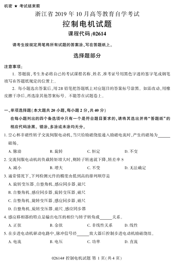 【結尾】以上就是關于2019年10月浙江自考02614控制電機試題的全部內容,考生如果想獲得更多關于浙江專升本相關資訊,如浙江專升本政策公告、統招專升本、成考專升本、自考專升本、網教專升本、專升本常見問題等相關信息,敬請關注我們浙江專升本網(http://m.205760.com/)。