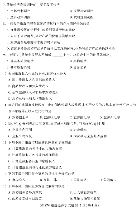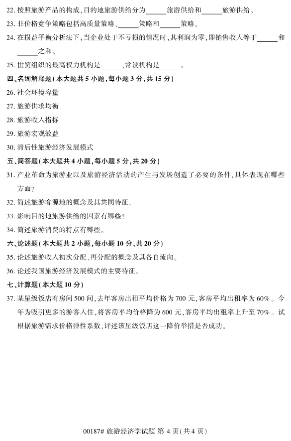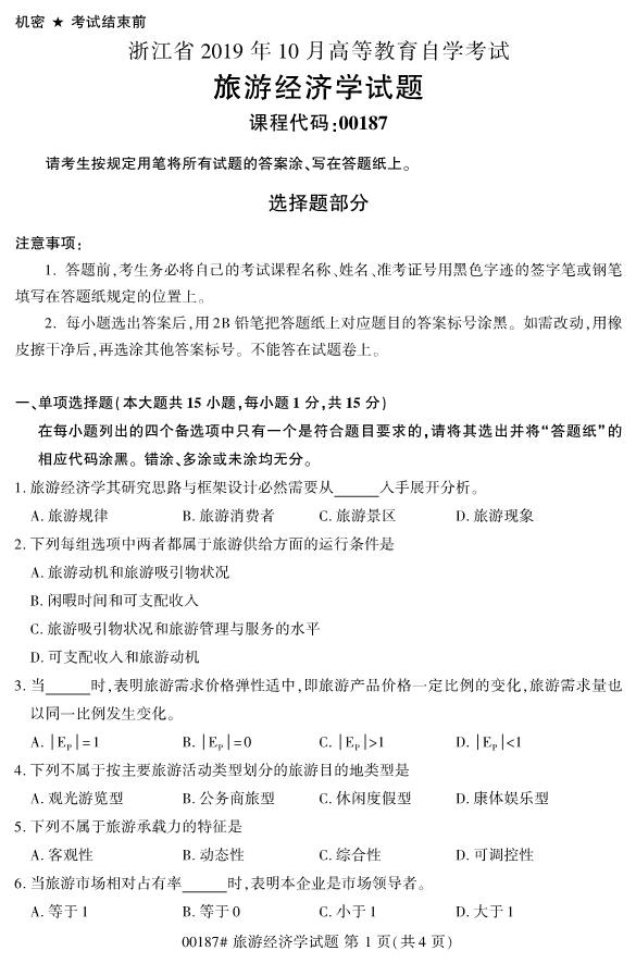 對于準備報考2020年4月浙江自考專升本考試的考生們來說,2019年即將結束,2020年浙江自考專升本考試即將來臨。現階段考生們最重要的事情就是確定自己的報考專業和報考院校,以便能夠更有針對性的進行復習備考工作。為了幫助各位考生們備考,小編整理了2019年10月浙江自考00187旅游經濟學試題。