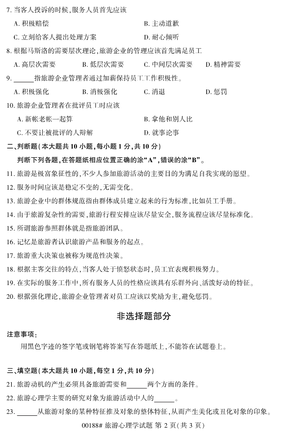 【結尾】以上就是關于2019年10月浙江自考00188旅游心理學試題的全部內容,考生如果想獲得更多關于浙江專升本相關資訊,如浙江專升本政策公告、統招專升本、成考專升本、自考專升本、網教專升本、專升本常見問題等相關信息,敬請關注我們浙江專升本網(http://m.205760.com/)。