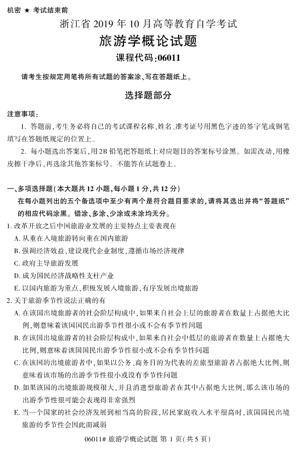 【結(jié)尾】以上就是關(guān)于2019年10月浙江自考專(zhuān)升本06011旅游學(xué)概論試題的內(nèi)容,考生如果想獲得更多關(guān)于浙江專(zhuān)升本相關(guān)資訊,如浙江專(zhuān)升本政策公告、統(tǒng)招專(zhuān)升本、成考專(zhuān)升本、自考專(zhuān)升本、網(wǎng)教專(zhuān)升本、專(zhuān)升本常見(jiàn)問(wèn)題等相關(guān)信息,敬請(qǐng)關(guān)注我們浙江專(zhuān)升本網(wǎng)(http://m.205760.com/)。