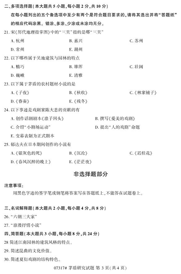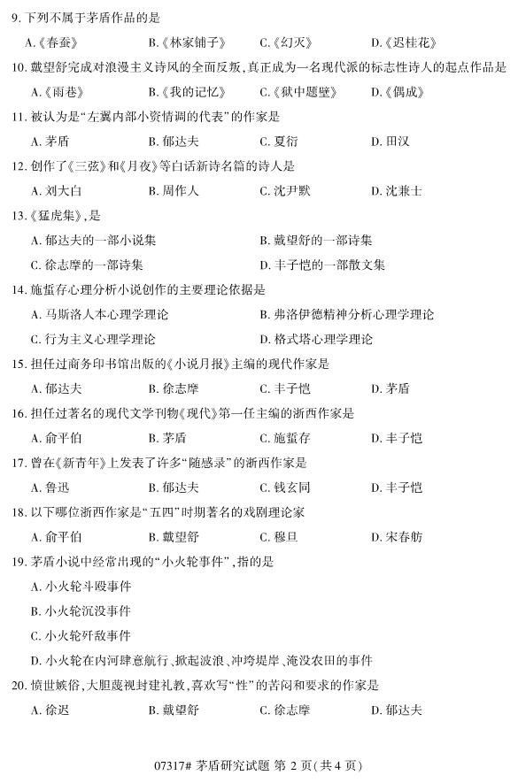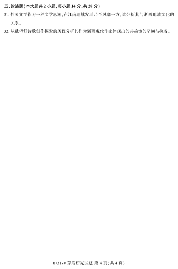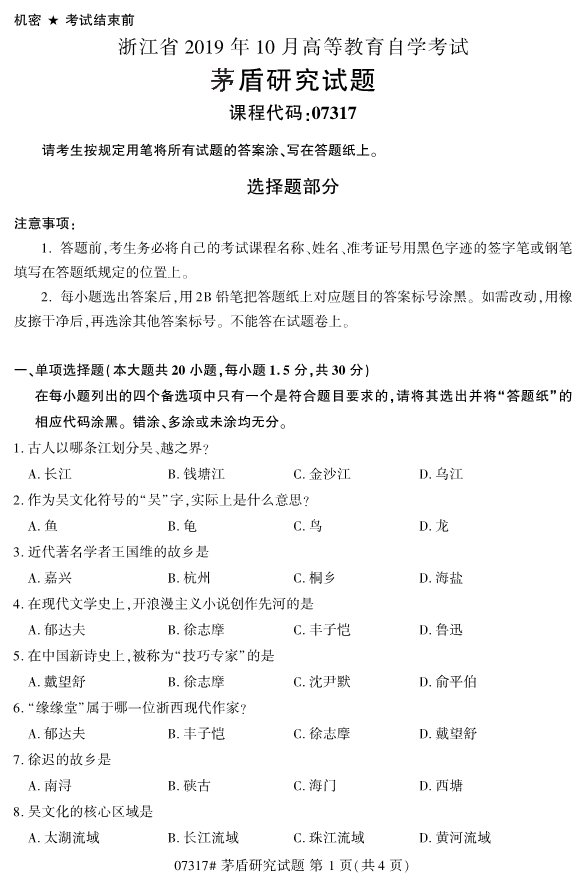 【結尾】以上就是關于2019年10月浙江自考專升本07317茅盾研究試題的全部內容,考生如果想獲得更多關于浙江專升本相關資訊,如浙江專升本政策公告、統招專升本、成考專升本、自考專升本、網教專升本、專升本常見問題等相關信息,敬請關注我們浙江專升本網(http://m.205760.com/)。