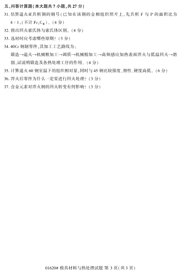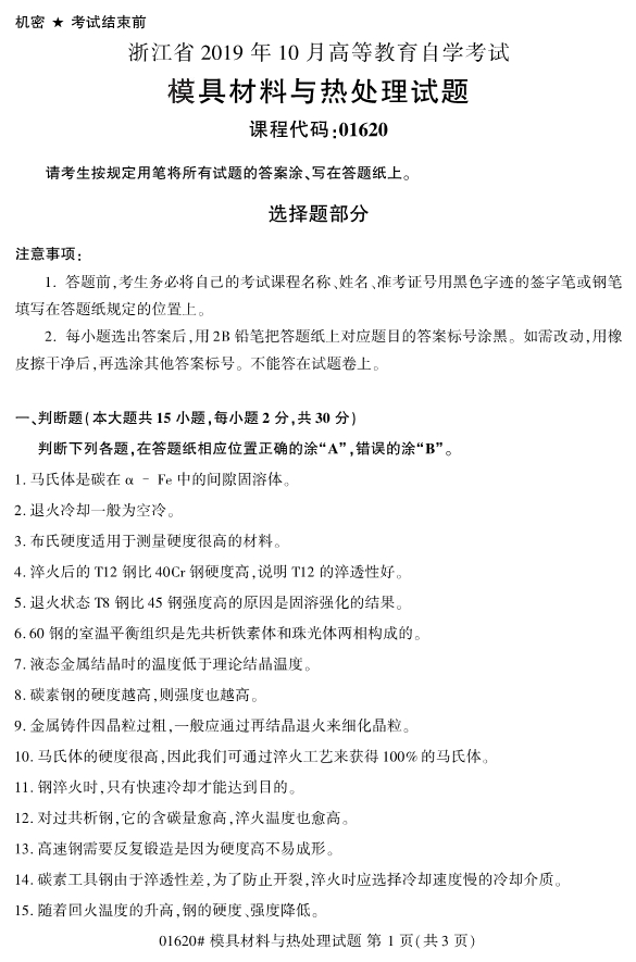 【結尾】以上就是關于2019年10月浙江自考專升本01620模具材料與熱處理試題的全部內容,考生如果想獲得更多關于浙江專升本相關資訊,如浙江專升本政策公告、統招專升本、成考專升本、自考專升本、網教專升本、專升本常見問題等相關信息,敬請關注我們浙江專升本網(http://m.205760.com/)。