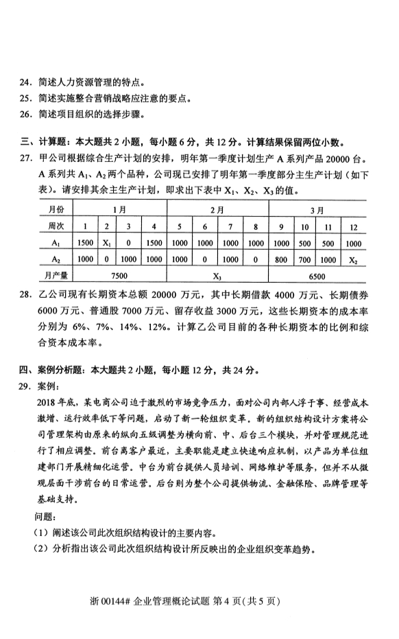 浙江專升本 >自學考試 > 歷年真題 > 2020年8月浙江自考專升本企業管理概論真題